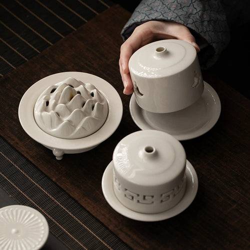 Hand-Painted Ash Glaze Travel Censer Set | Portable Incense Altar with 9-Hole Holder | Classical Chinese Design | Zenith Censer -