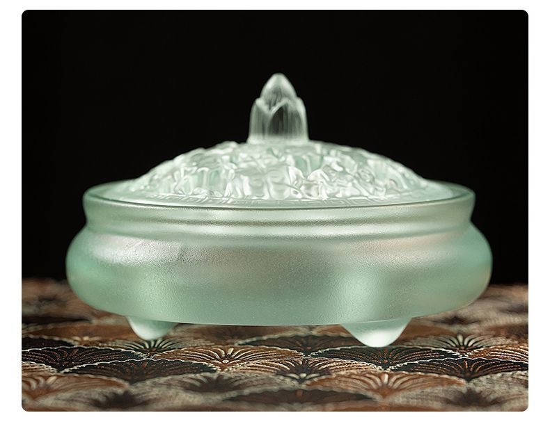 Hand-Blown Glass Xuande-Style Incense Burner | Transparent Censer for Coil/Cone Incense & Rituals | With Premium Sandalwood Options | Zenith Censer