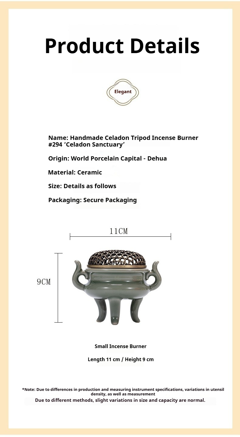Zenith Censer delves deeply into this path, presenting #294 from the 「Celadon Sanctuary」 series. We pursue the ultimate aspiration of the Song imperial kilns. Shaped entirely by hand on the potter’s wheel, it recreates the classic tripod form. The body is evenly thin and crisp, its lines flowing like breath. Coated with a secret-recipe, powdered bluish-green glaze and tempered through multiple kiln firings, it achieves this “sky-after-rain” hue—warm, restrained, and silently luminous. A natural network of “ice-crackle” texture blooms faintly beneath the glaze, a unique signature gifted by time and the mastery of fire.