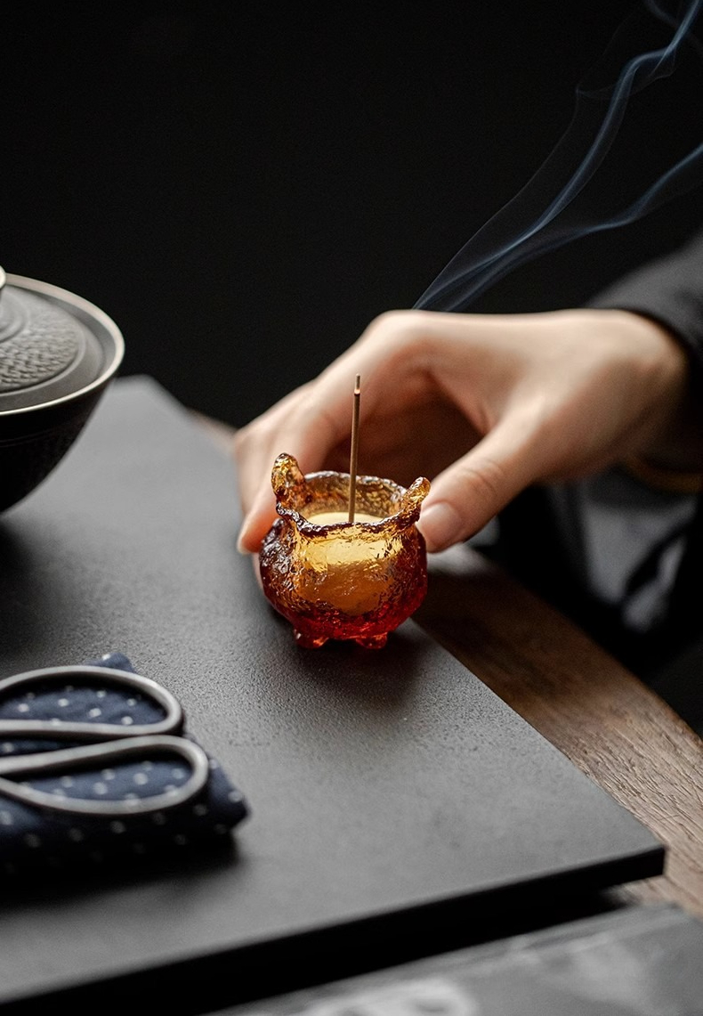 Inspired by this profound metaphor, Zenith Censer presents the **Cicada Dream** series of hand-blown glass incense burners. Created in collaboration with master glassblowers, each piece utilizes ancient techniques to capture and solidify flowing light and shadow within its form. The vessel is luminous and translucent; its colors—reminiscent of amber nectar or twilight haze—allow light to pass through, effectively illuminating your sacred space from within.